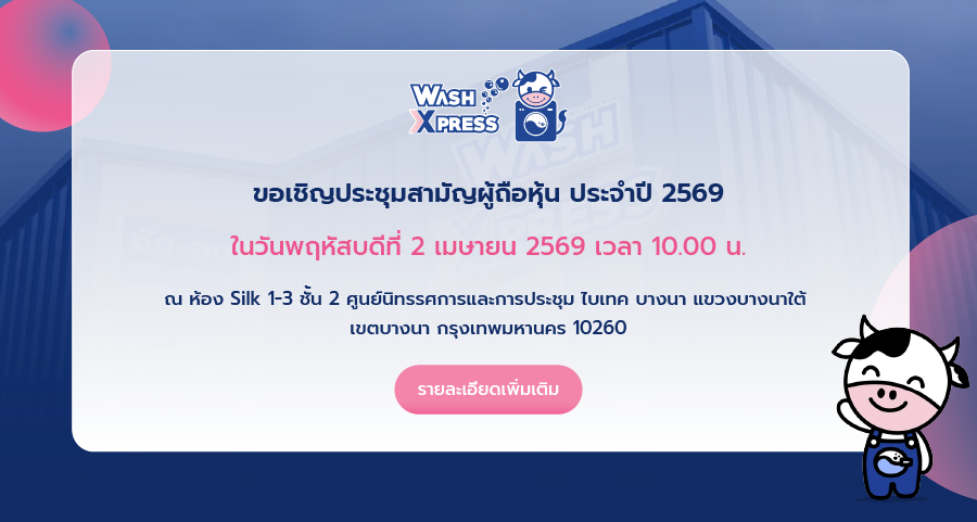 หนึ่งในผู้นำธุรกิจร้านสะดวกซักในประเทศไทย WashXpress กระจายตัวครอบคลุม 21 จังหวัดในประเทศไทย